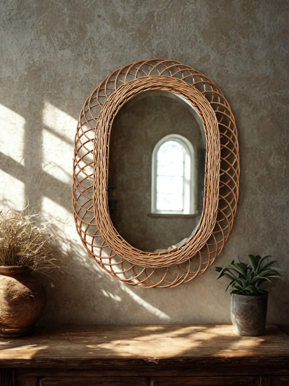 Imagine usar este produto em sua sala de estar, refletindo a luz natural e criando uma atmosfera acolhedora para receber amigos e familiares. Ou, quem sabe, em seu quarto, onde ele pode se tornar um ponto focal, tornando o ambiente mais amplo e iluminado. O Espelho Oval de Vime é ideal para qualquer cenário, proporcionando não apenas beleza, mas também praticidade no dia a dia.